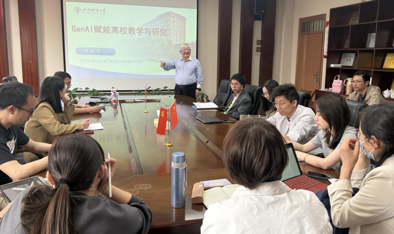 邀请,上海财经大学数学学院院长、博士生导师,浙江理工大学理学院二级教授徐定华教授在6号学院楼402会议室作题为“GenAI赋能统计·数学教学与研究”的讲座。讲座由副院长郑松教授主持,部分教师参加了此次讲座。