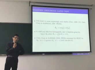 做了一场题为“EM-TEST UNDER FINITE LOCATION-SCALE MIXTURES”的学术讲座。讲座由黄漫
