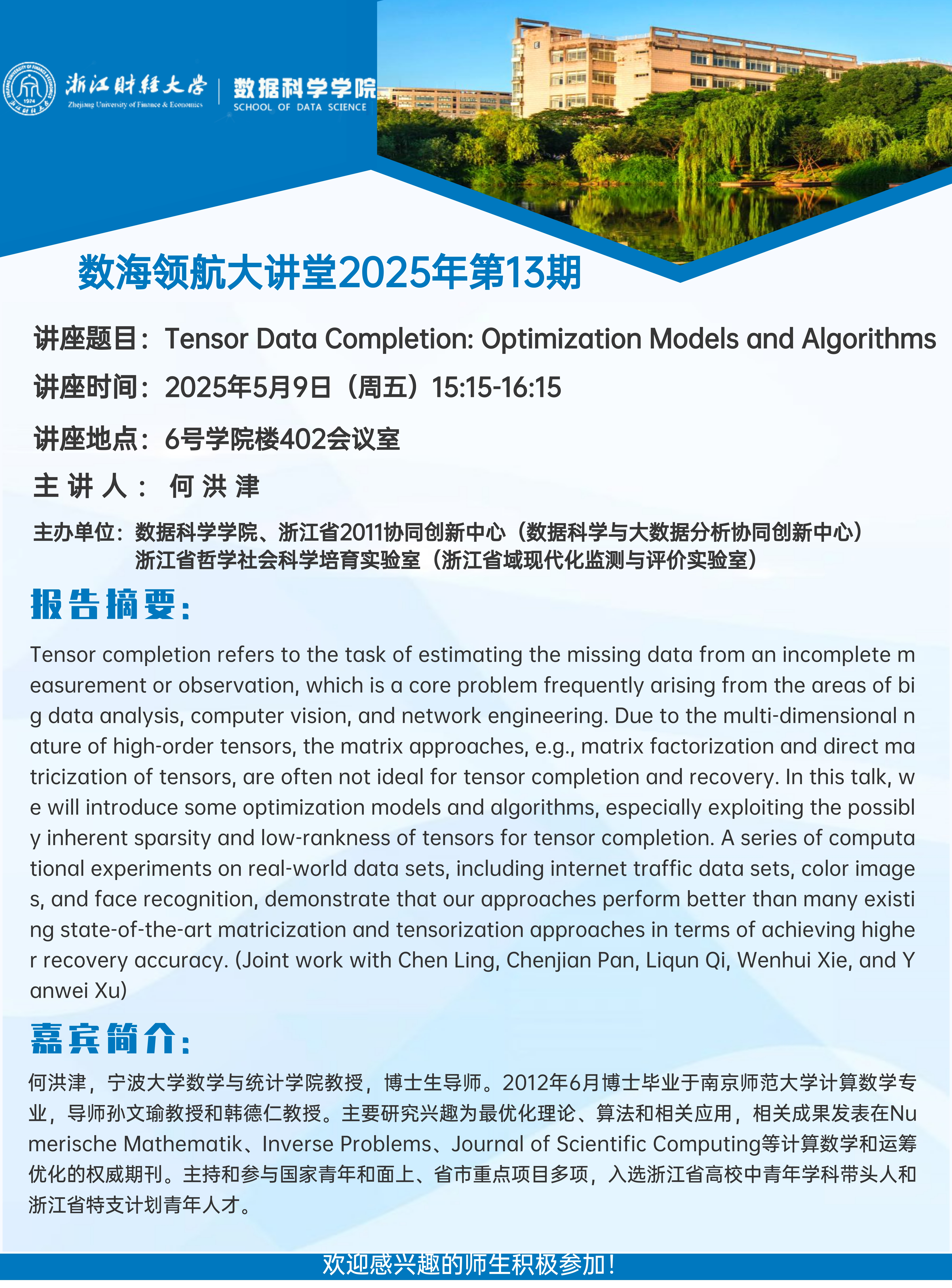 上一条:数据驱动的胞映射方法及其应用——数海领航大讲堂2025年第12期开讲 下一条:数海领航大讲堂2025年第12期——西北工业大学岳晓乐教授