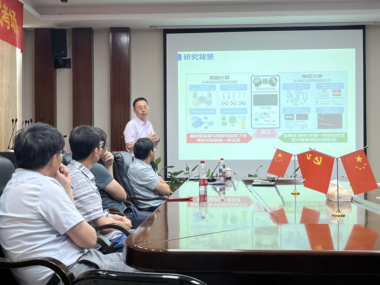 郑能干教授围绕神经科学和仿生智能领域的前沿问题——果蝇幼虫软体运动控制机制展开了深入探讨。果蝇幼虫因其结构简单、运动模式多样且具备显著的运动学习能力,成为研究生物运动控制机制的理想对象。讲座中,郑教授系统性阐释了果蝇幼虫多模式软体运动控制的工作机理,并介绍了基于其生理结构和运动特性的仿生计算模型构建方法。在数据处理方面,研究提出了多尺度特征交互框架,显著提升了多模态神经行为数据的处理效率;在模型构建方面,设计了一种支持虚拟多体节软体运动控制的仿真计算模型,实现了结构与功能可解释的建模目标。通过整合神经行为数据分析与仿生建模,该研究不仅深化了对软体动物运动控制机制的理解,还为软体机器人运动控制算法的设计提供了新的理论支持与技术路径。