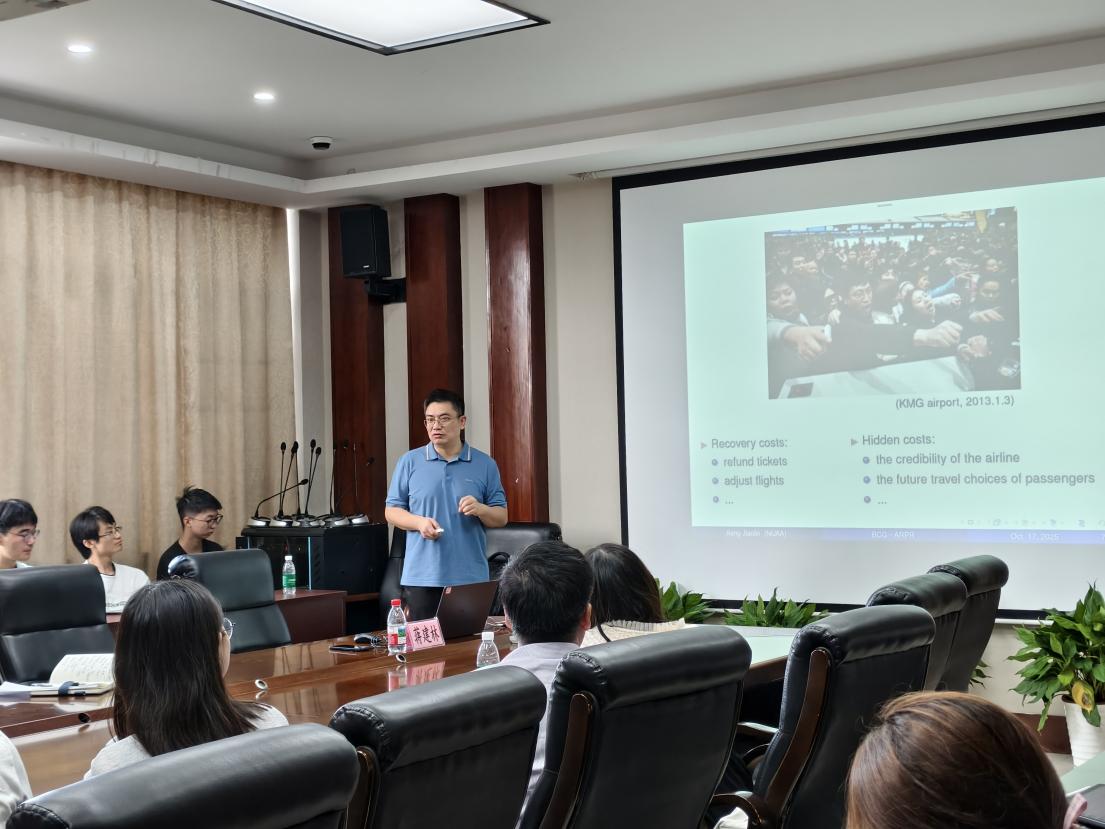本次讲座让在场师生了解了航空交通中断管理领域的“粗-细”复制航班法和Benders分解、列生成策略等前沿技术。讲座结束后,师生围绕模型求解效率提升、真实数据适配等关键问题展开深入研讨。本次讲座不仅为航空公司运营引入了新的解决方案,更在推动交通运筹优化发展、助力航空业高质量恢复的过程中,进一步拓展了相关研究的发展新空间。