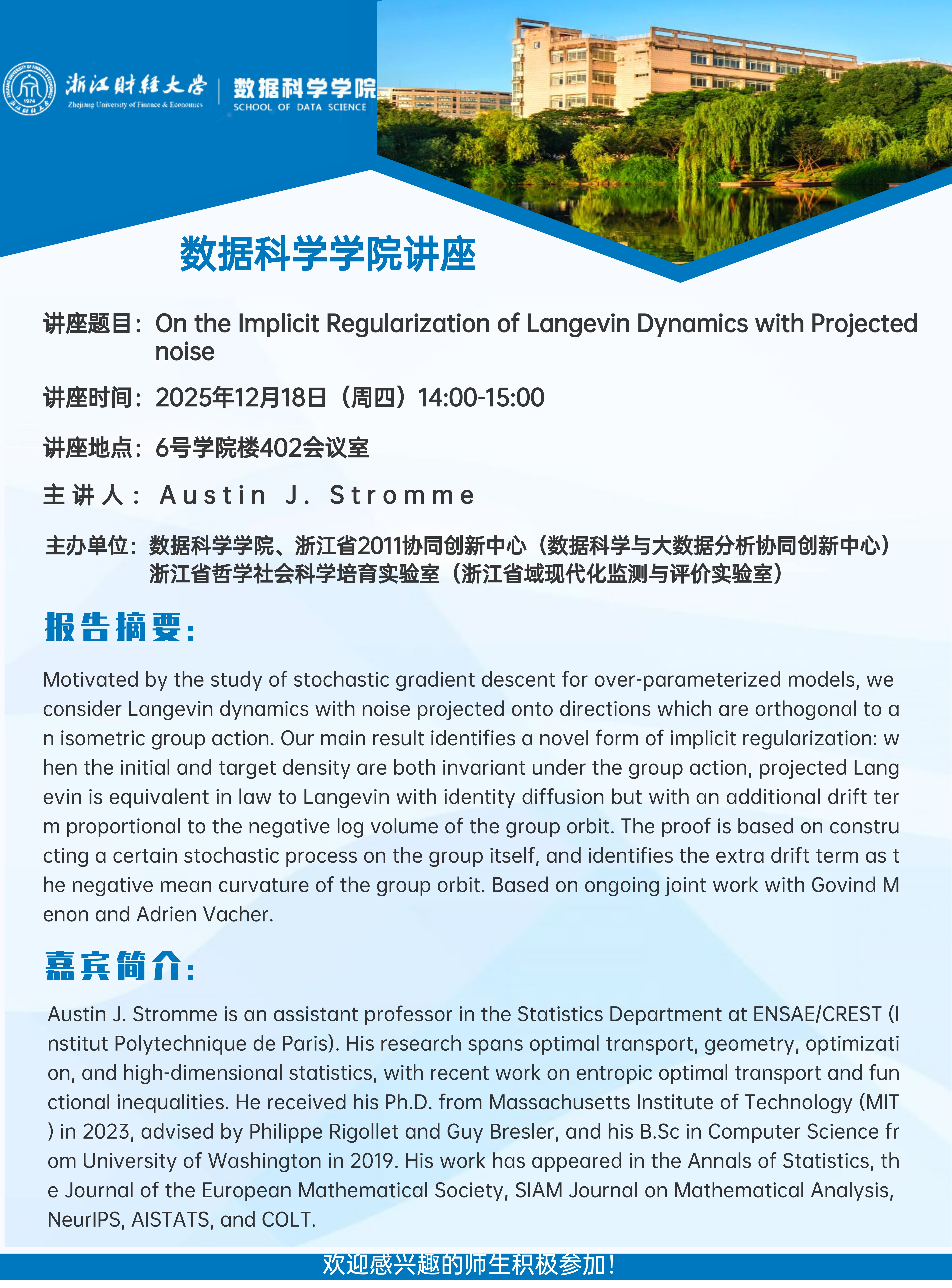 上一条:黄漫 讲座信息-the University College London (UCL) Division of Psychiatry Stephanie Wu博士 下一条:第二届统计学与数据科学青年学者论坛