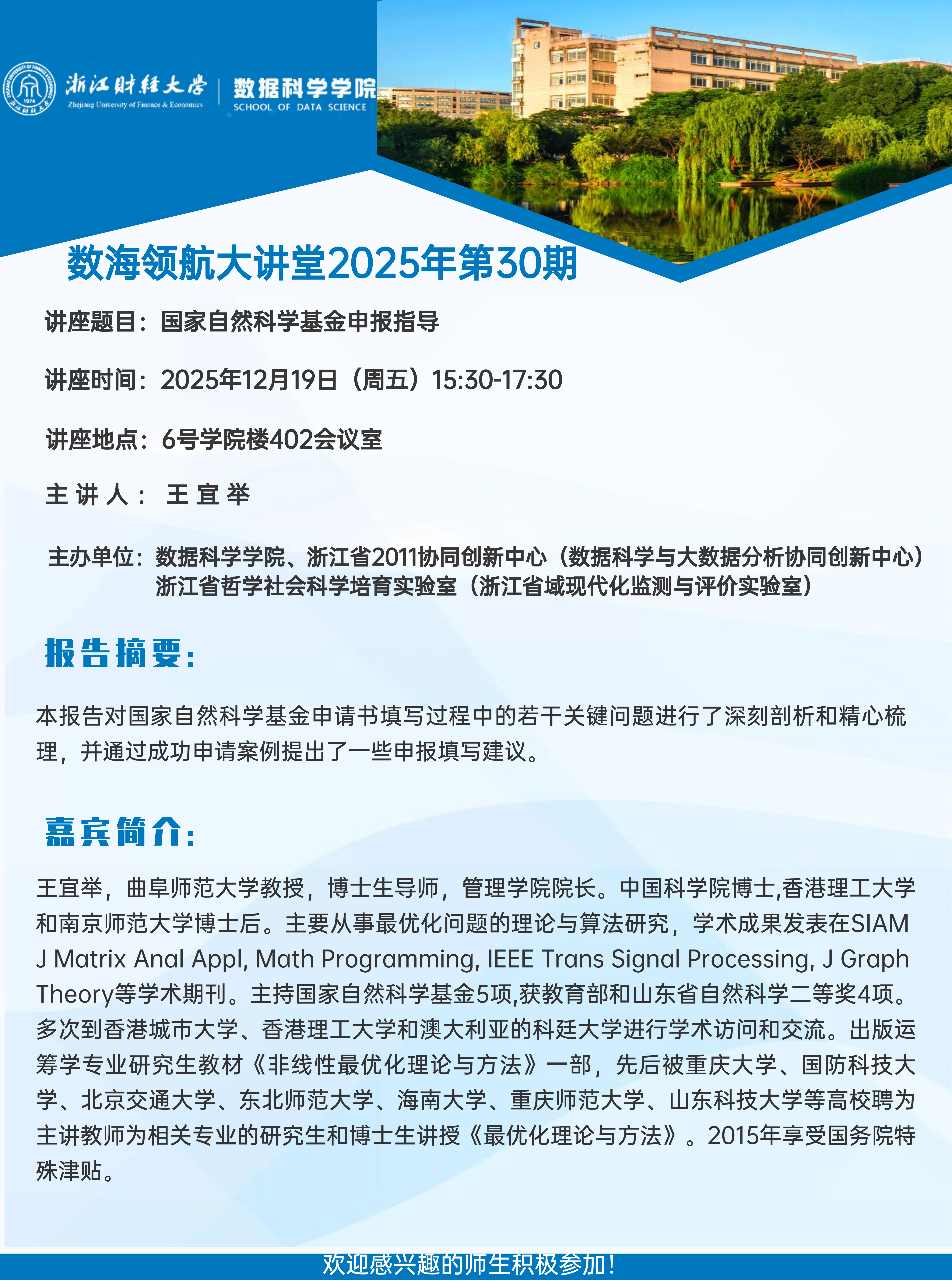 上一条:TA novel tensor decomposition-based approach for internet traffic data recovery and forecast ——数海领航大讲堂2025年第28期开讲 下一条:数海领航大讲堂2025年第29期——青岛大学杜守强教授