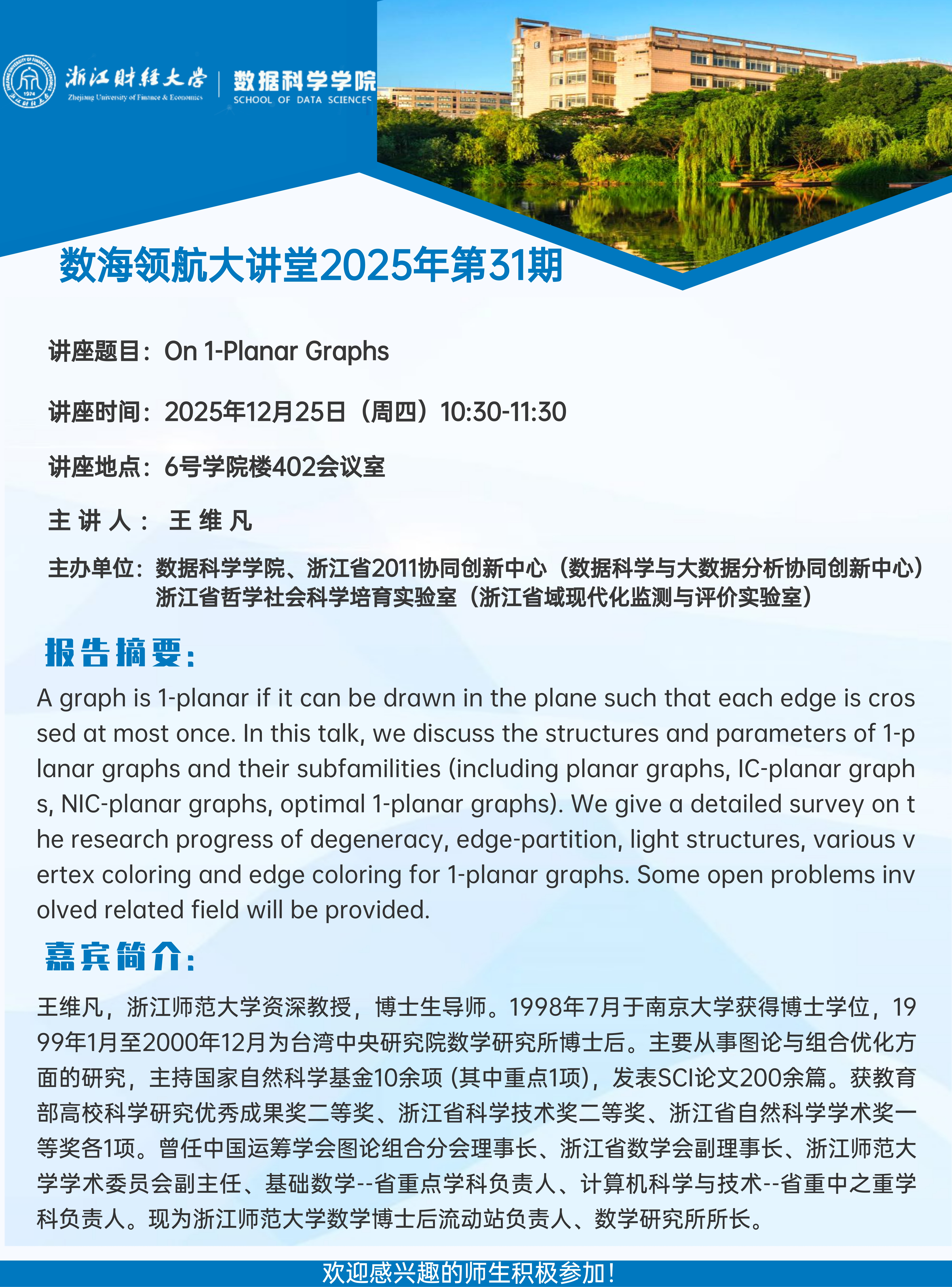 上一条:数海领航大讲堂2025年第32期——加州大学河滨分校姚卫鑫教授 下一条:国家自然科学基金申报指导——数海领航大讲堂2025年第30期开讲