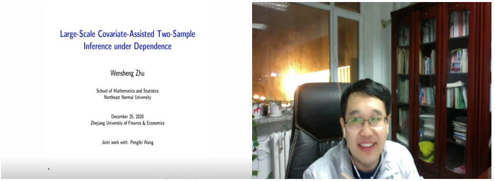 师生作了一场题为“Large-Scale Covariate Assisted Two-Sample Inference under Dependence”的线上专题讲座。讲座由黄漫