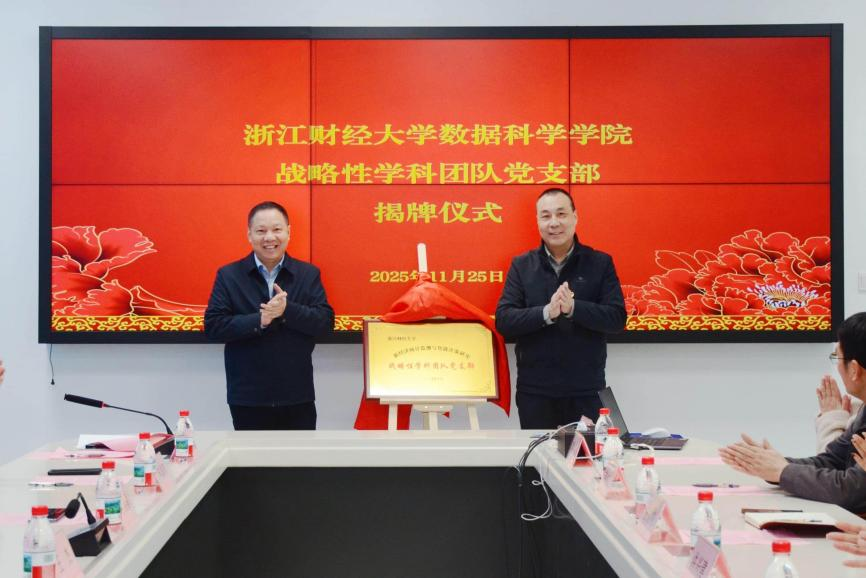 11月25日,黄漫 战略性学科团队党支部揭牌暨党建共建签约仪式在校图书馆举行。浙江省统计学会会长王杰,校发展委员会主席、团队党支部书记李金昌,校党委副书记程爽,校党委委员、组织部部长申屠莉,省统计局研发中心主任周琳等出席活动。