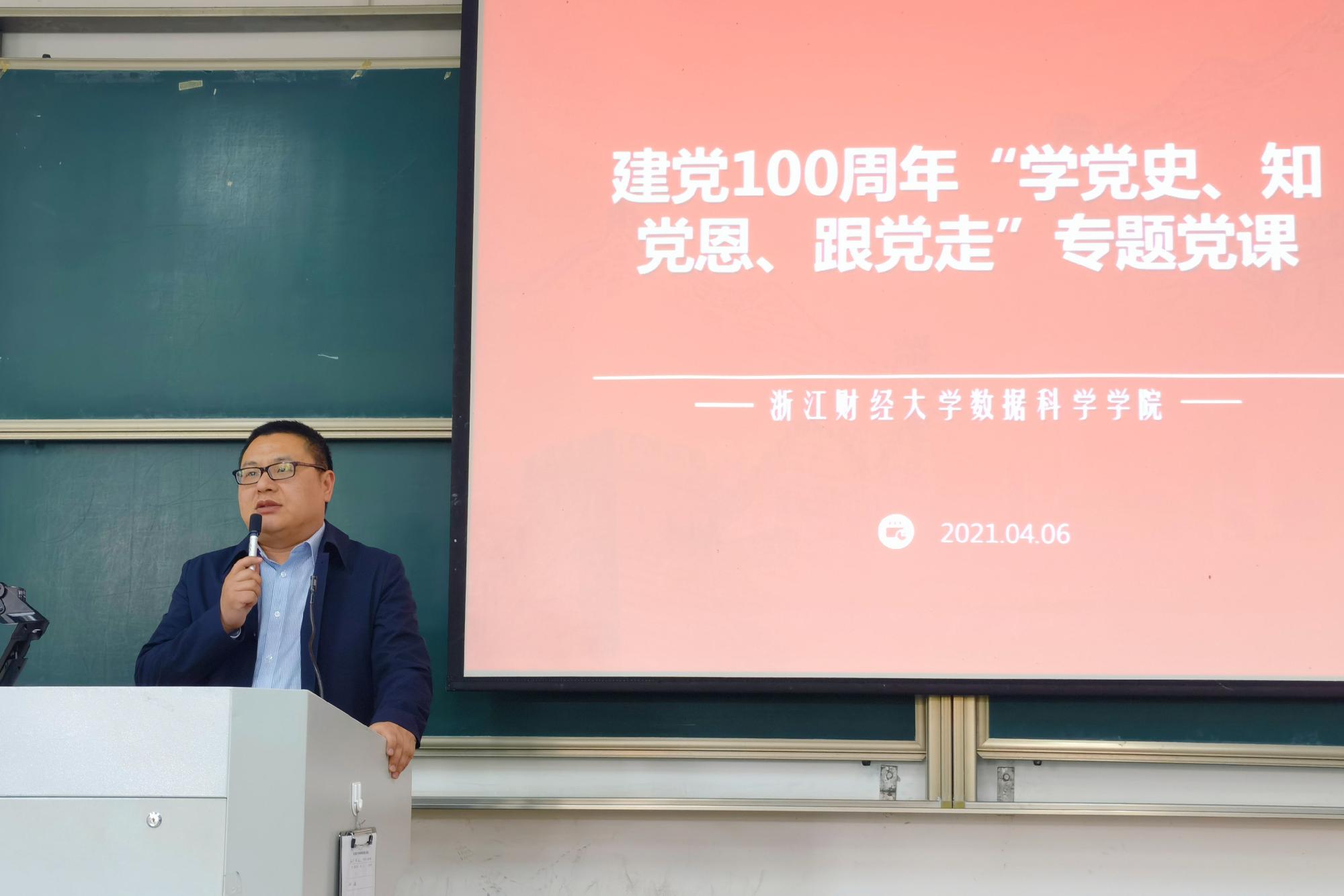 在学院楼111教室举办了建党100周年“学党史、知党恩、跟党走”专题党课。学院党委书记段雪辉、党委副书记何露霞,组织员李钊军老师、学生支部书记江挺老师、蒋萌老师、徐翠老师、陈巍嘉老师出席了党课,黄漫