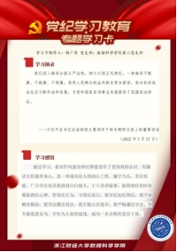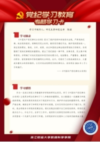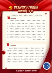 各党支部党员从《条例》和习近平总书记关于党规党纪的重要论述中摘录学习内容,并附上学习心得,制作成专题学习卡,分享到支部微信群。支部成员围绕当天的学习内容进行交流讨论。