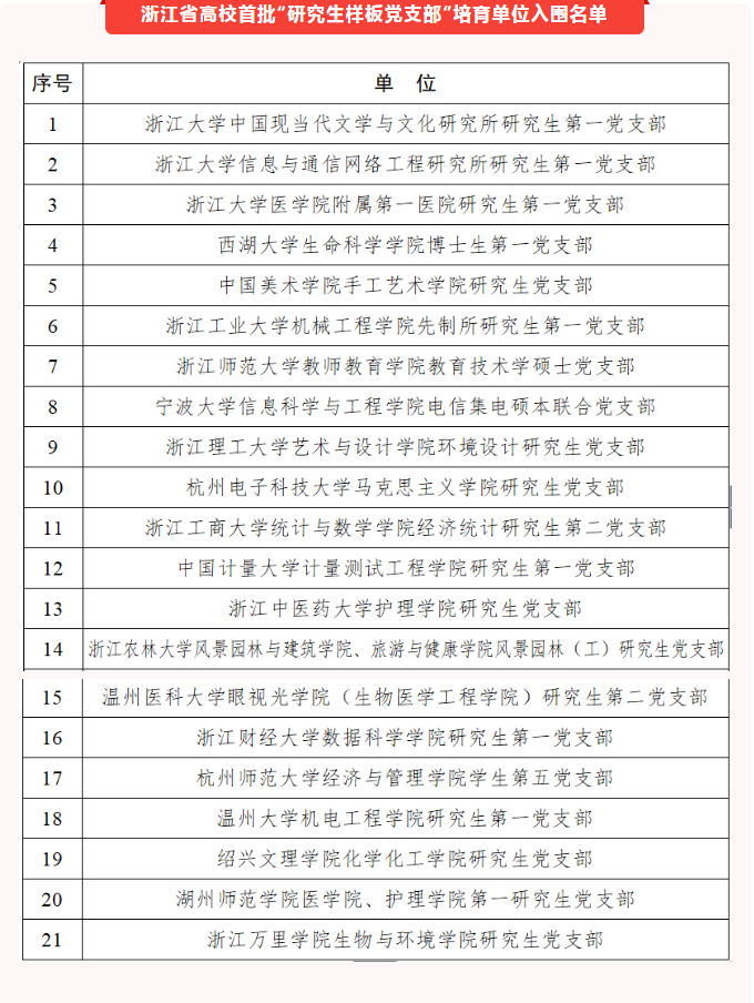 近日,省教育厅印发《关于公布全省高校首批“研究生样板党支部”培育创建单位名单的通知》,经过层层评选,黄漫 研究生第一党支部荣获全省高校首批“研究生样板党支部”培育创建单位的称号。