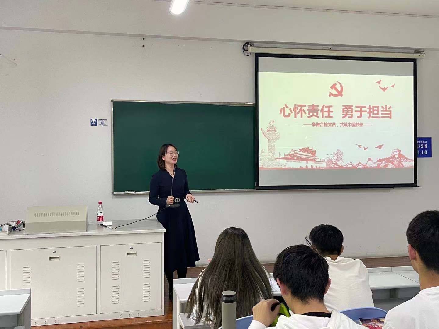 陆頲浩老师讲解了青春名义下的使命与责任,带领大家朗诵了《破窑赋》,让大家明白身为新时代的青年和入党积极分子,我们要积极承担社会责任,为推动社会主义现代化发展贡献自己的力量。罗金艳老师通过《中国共产党纪律处分条例》和几个违规违纪的党员事迹,告诉我们话“廉”的战略意义和必要性,警示我们即使身在校园,也要做到清廉正直,“青年兴则国家兴,青年强则国家强”,只有青年做到有理想、有本领、有担当,国家才有前途,民族才有希望。在“大学生如何积极争取入党”专题课中,陈炜老师围绕“入党基本条件”“端正入党动机”“如何创造入党条件?”“申请入党”四个部分提出积极争取入党的“八大要求”,为积极分子入党提供了明确的努力方向。在“从社会主义核心价值观到文化自信”专题课中,程晓东老师系统阐述了国家的制度优势,充分展现了遵循社会主义核心价值观的意义和坚持文化自信、制度自信的重要性。袁慧兰老师讲述了疫情之下生命教育的再思考,她通过许多案例教会了我们如何对生命有一个客观理性的认知。何露霞老师在“当代青年学生党员的责任与担当”课程中强调了青年学生要保持独立的思考能力、坚定的中国立场和坚决的实际行动来彰显当代青年学生的责任与时代担当。