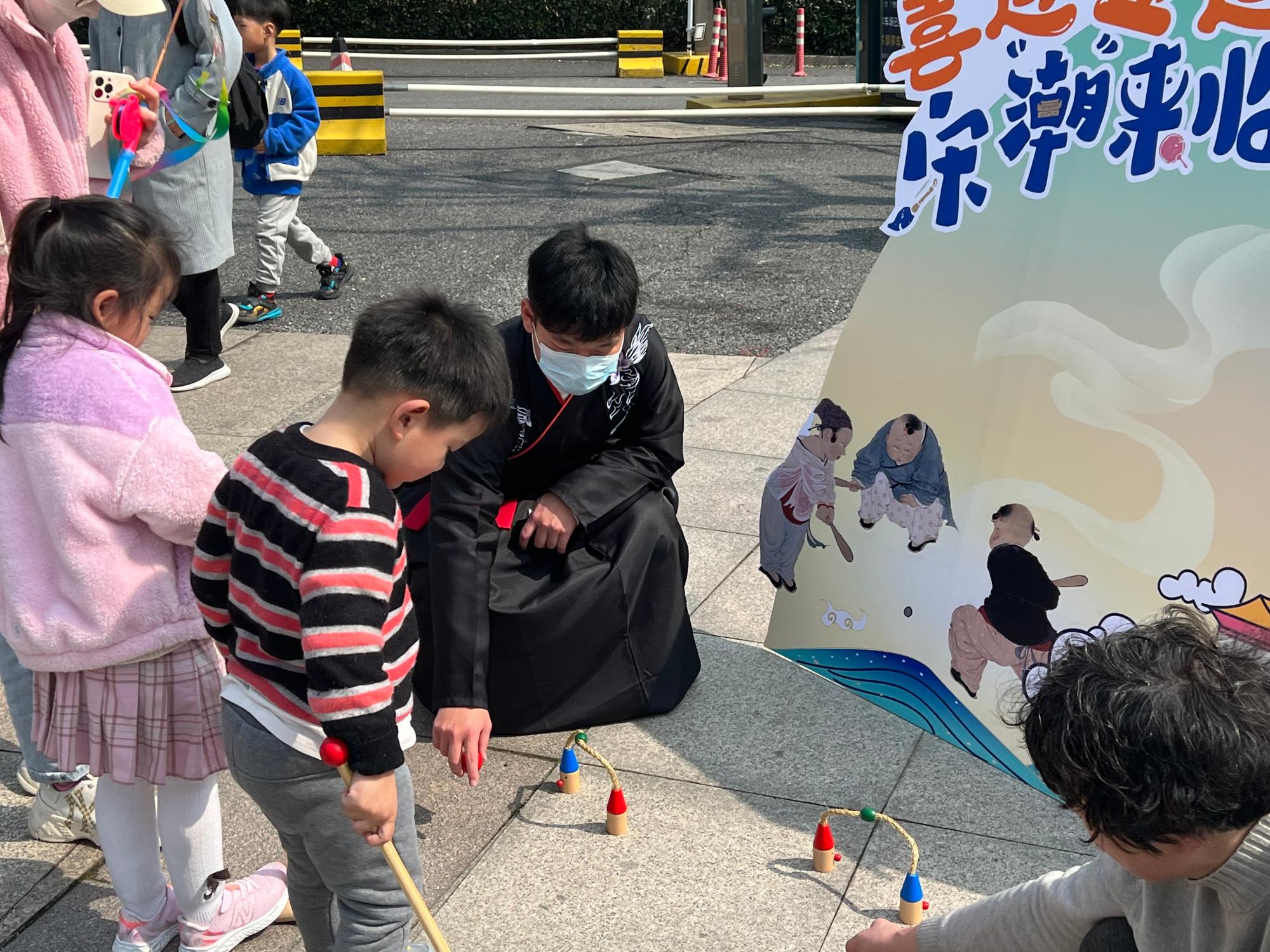 学院组织志愿者来到临平科技馆参加以喜迎亚运·来临为主题的志愿服务活动。活动现场,志愿者们和孩子一起通过科技、益智、美学、面孔、腔调、穿搭等14个互动项目,带小朋友们一起“穿越”宋朝,沉浸式领略宋代风情,一睹精巧典雅的大宋匠心。