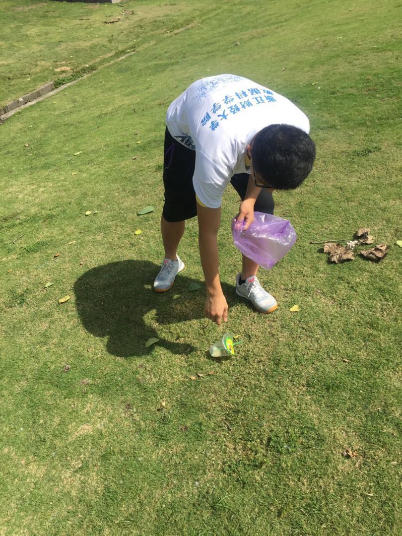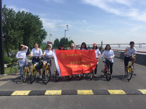 上午9:00,党支部志愿者于学院楼集合,一同骑车前往钱塘江边,沿钱塘江边清扫垃圾,并对垃圾进行分类处理。