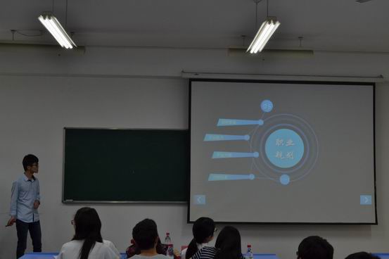 比赛在下午2点30分准时开始。选手们按照编号依次上台结合PPT进行演讲。围绕理想、未来、职业、人生等方面,选手们各抒己见,把自己对于职业生涯的规划掷地有声地表达出来,场下掌声阵阵。每位选手演讲结束后,由评委进行点评和指导。