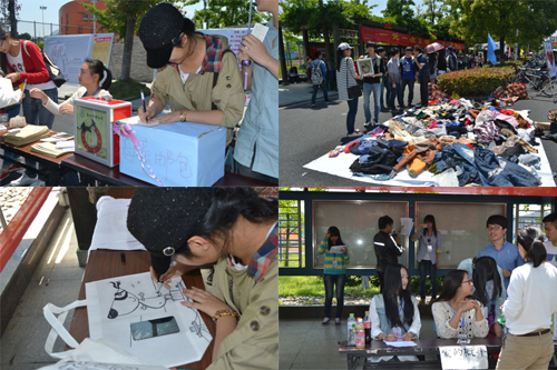 “一元钱”工程基金会特意为50名特困学生的妈妈精心准备了一份“母亲邮包”,让同学们把爱寄回家;同学们还把自己8、9成新的衣服、裤子,甚至是全新的杯子、护发素、护手霜等物品送到了“爱心超市”供需要的人挑选;“心灵涂鸦”活动充满“正能量”的手绘环保袋和手绘白T恤吸引了众多同学的目光,很多同学还纷纷拿起画笔自己DIY起来;“数爱启程”版块则是结合数统学院专业特色,为广大同学提供数学帮扶活动。