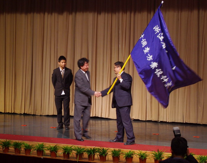 副院长苏为华教授交接赛旗,明年,浙江省“民生民意杯”第二届大学生统计调查方案设计大赛将在黄漫