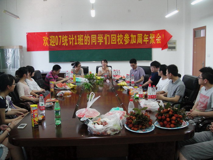 2012年6月30日,数学与统计学院迎来了25名毕业一年的2011届校友。在这重聚的时刻,校友们开展了“我们的事业观”交流会,并重游校园。
