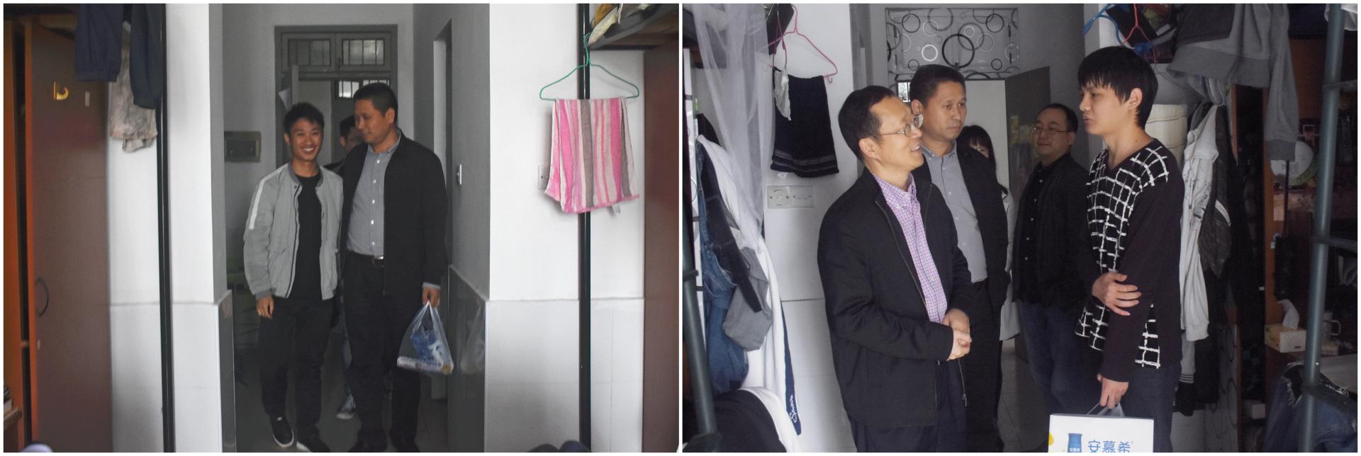本学期开学以来,学院领导开展了多次针对新生、考研学生、青年教工等群体的走访活动。本次走访的学生宿舍以贫困生所在宿舍为主,学院领导班子仔细询问了同学们的学习生活情况,还给他们送上了日用品和食品。得知有的同学正在创业,学院领导深入了解了他们的公司运营情况及发展前景,在称赞他们勇于尝试的同时,也叮嘱他们不要放松学习,要做到创业、学业两手抓。