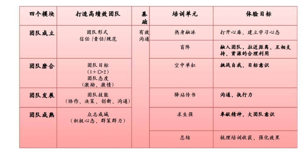 促进团队之间的融合,促进相互之间的交流,加强团队建设,提升青年领导力,打造一支彼此融洽,高效执行的高绩效团队。