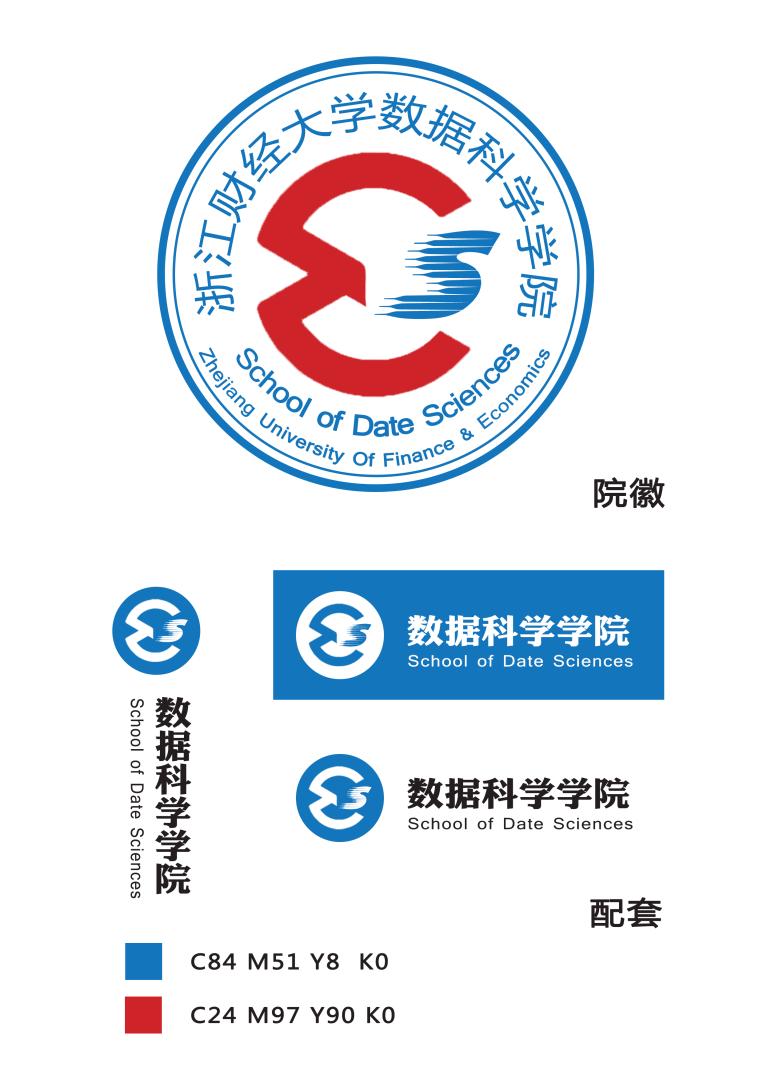 内部图案取自数学科学和统计科学中的符号西格玛“Σ”,“S”字母含义为Sciences,亦可理解成数据的中文首字母,既代表着本院是统计大院,数据强院,其由不同高度的柱状图变形后组成,也解释了数据科学、统计科学的含义。