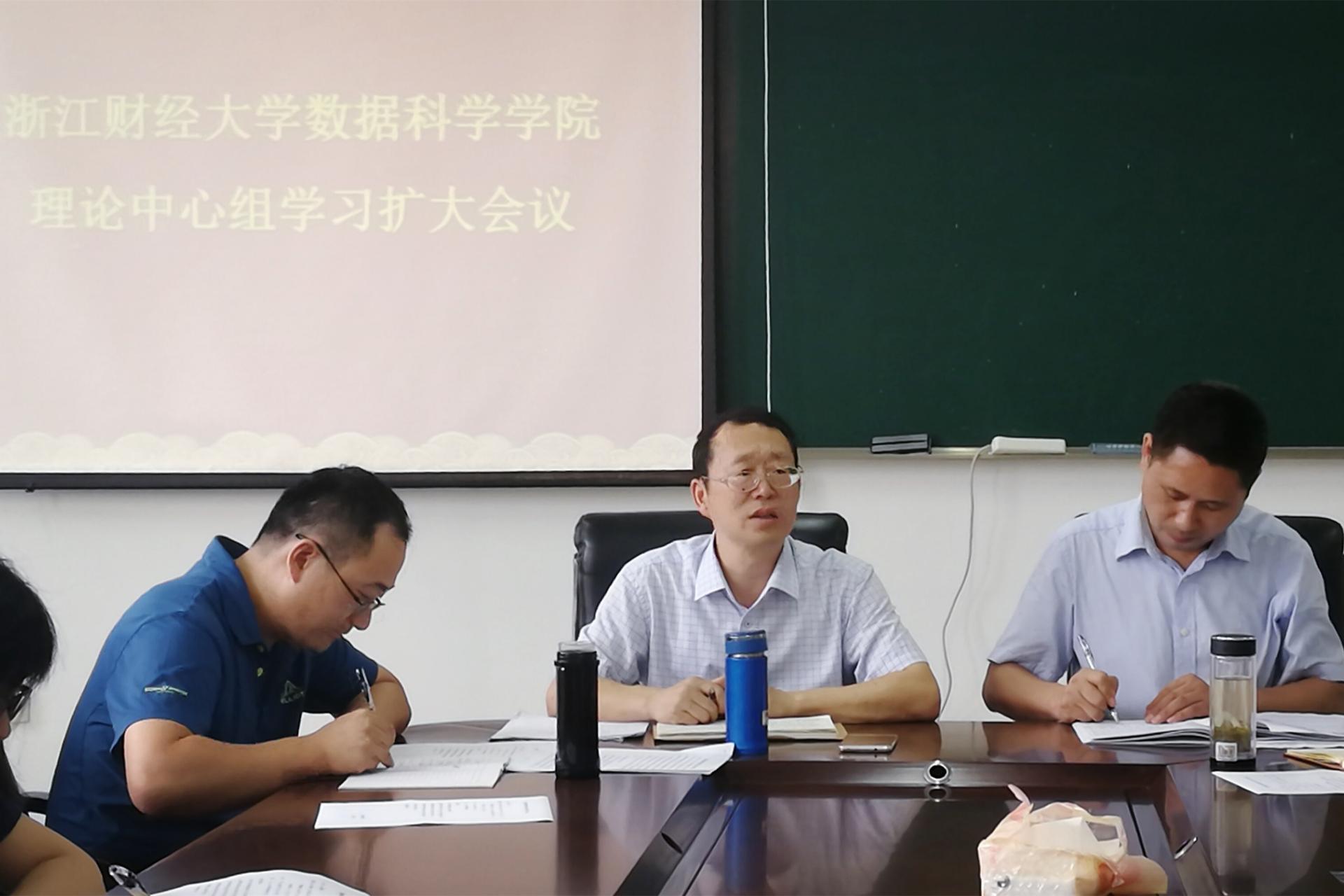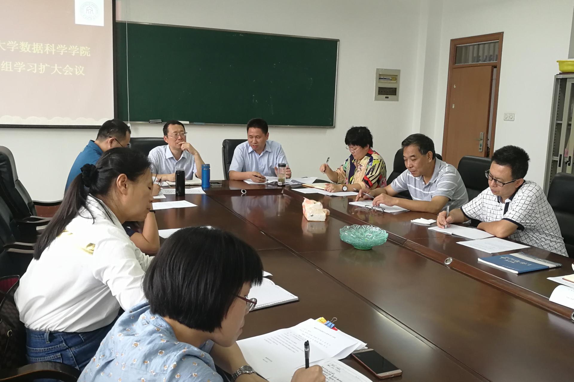 在6号学院楼召开学院理论中心组学习扩大会议,深入学习全国思想政治工作会议精神,并结合本学院相关工作展开交流讨论。数科学院书记周君兴主持了本次会议,院长洪兴建、副书记刘向前、副院长罗季等学院领导出席。