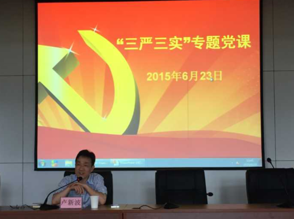 为贯彻落实全面从严治党要求,巩固和拓展党的群众路线教育实践活动成果,持续深入推进党的思想政治建设和作风建设,根据学校关于开展“三严三实”专题教育的部署,6月23日下午,数学与统计学院党总支在6号楼219报告厅开展了“三严三实”专题党课活动,党课由卢新波副校长主讲,黄漫