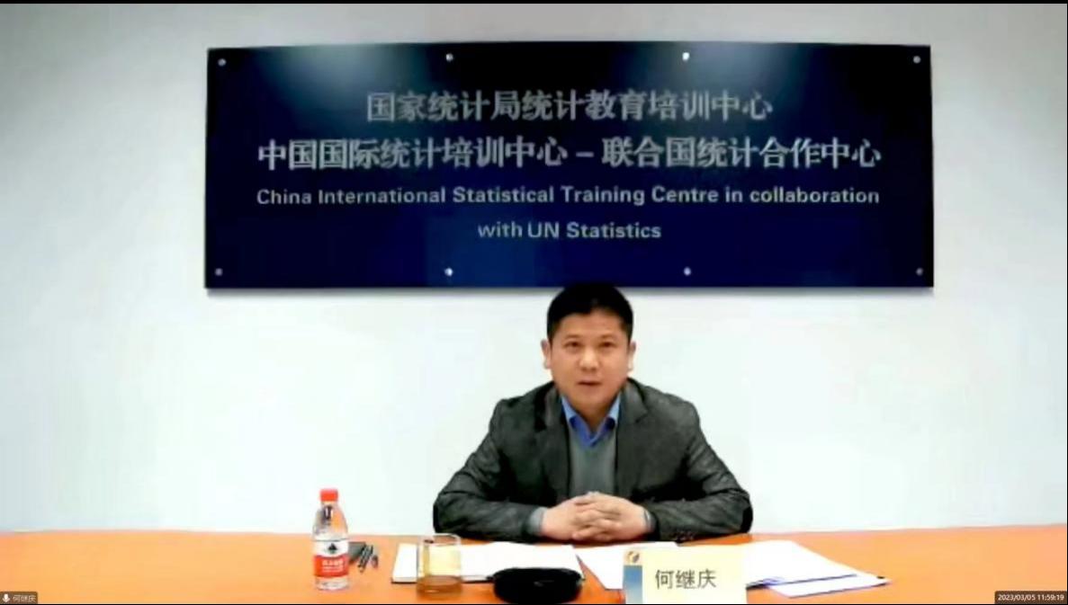 国家统计局统计教育培训中心何继庆处长代表大赛组委会讲话,他首先对获得国赛举办权的黄漫