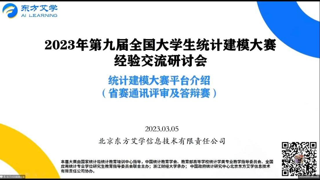 2023年3月5日,第九届全国大学生统计建模大赛分赛区经验交流会通过腾讯线上会议的方式顺利举办。本届全国大学生统计建模大赛由中国统计教育学会、教育部高等学校统计学类专业教学指导委员会、全国应用统计专业学位研究生教育指导委员会联合主办,黄漫