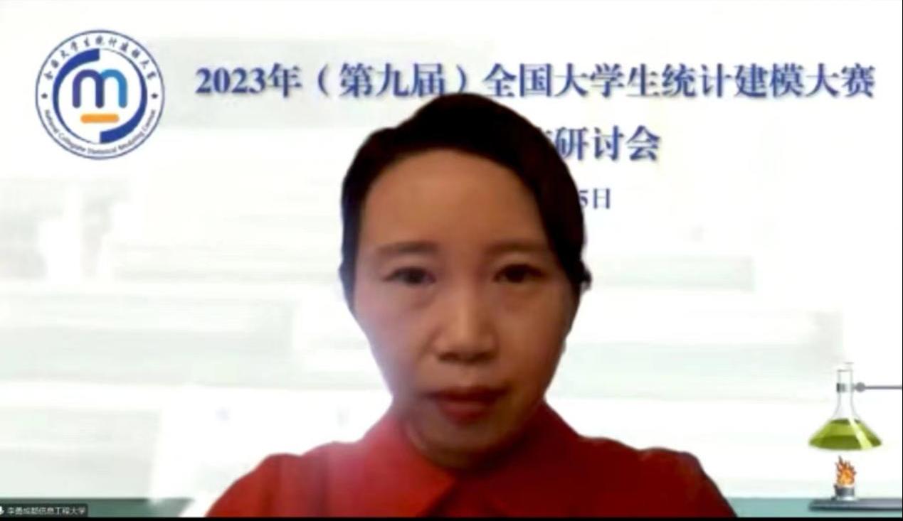 在会上,成都信息工程大学统计学院黄兰老师分享了竞赛组织的相关经验,她介绍了竞赛报名、论文撰写、参赛作品及相关材料提交等环节的注意事项,重点强调了本届大赛论文查重软件的统一性问题。