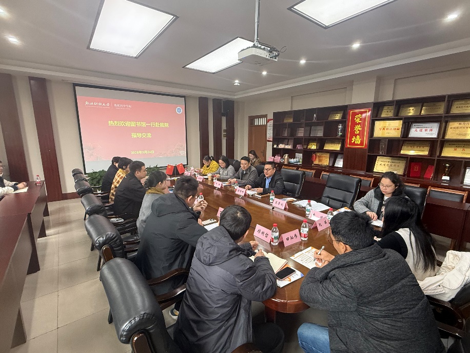 为进一步深化馆院协作,精准对接数据科学学科建设、教学科研与人才培养实际需求,推动图书情报资源与学院发展深度融合,3月24日上午,学校图书馆由党总支书记杨小恩、副馆长崔泰铭、专聘副馆长丁松带队,各核心业务部门负责人及专属学科馆员一行,莅临我院开展专题调研座谈。学院党委书记段雪辉、副院长郑松、师生代表、相关中心负责人共同参与交流,双方围绕学术资源保障、高层次人才服务、“一生一方案”人才培养模式改革支撑等核心议题深入沟通,共谋协同发展新思路。