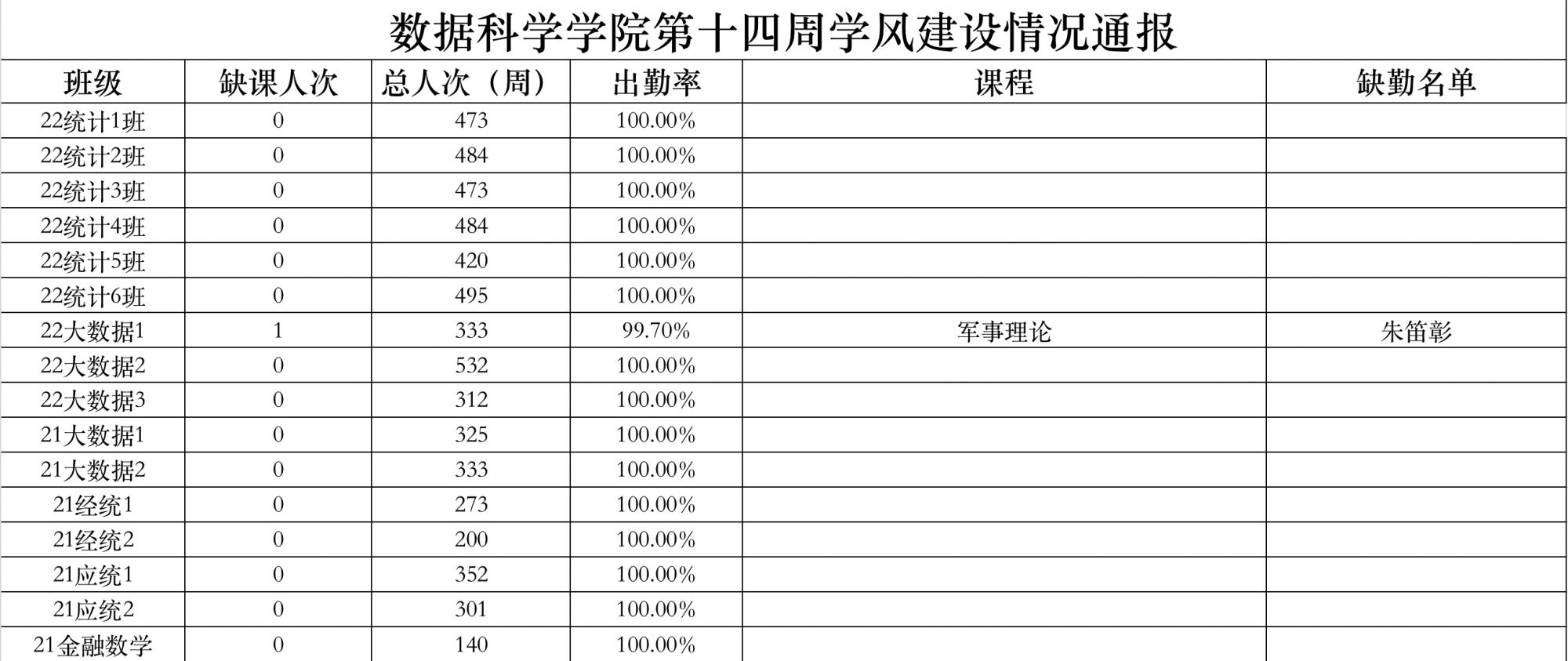为进一步培育优良学风,构建黄漫 学风建设的长效机制,营造良好的学习氛围,推进内涵建设,构建优良院风,学院对所有大一、大二班级统一上的课程及晚自习进行了课前全覆盖点名。现将点名情况做如下通报。