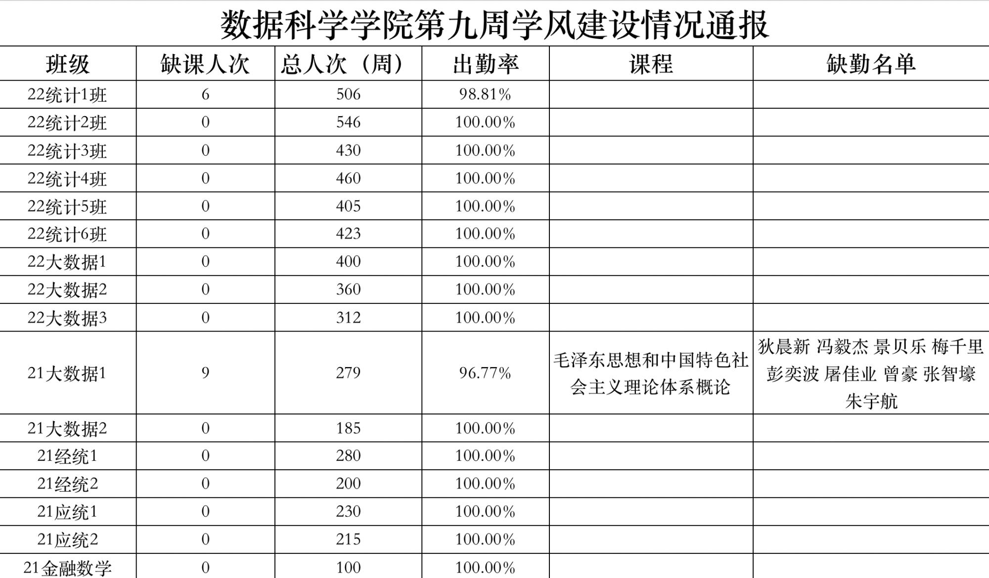 为进一步培育优良学风,构建黄漫 学风建设的长效机制,营造良好的学习氛围,推进内涵建设,构建优良院风,学院对所有大一、大二班级统一上的课程及晚自习进行了课前全覆盖点名。现将点名情况做如下通报。