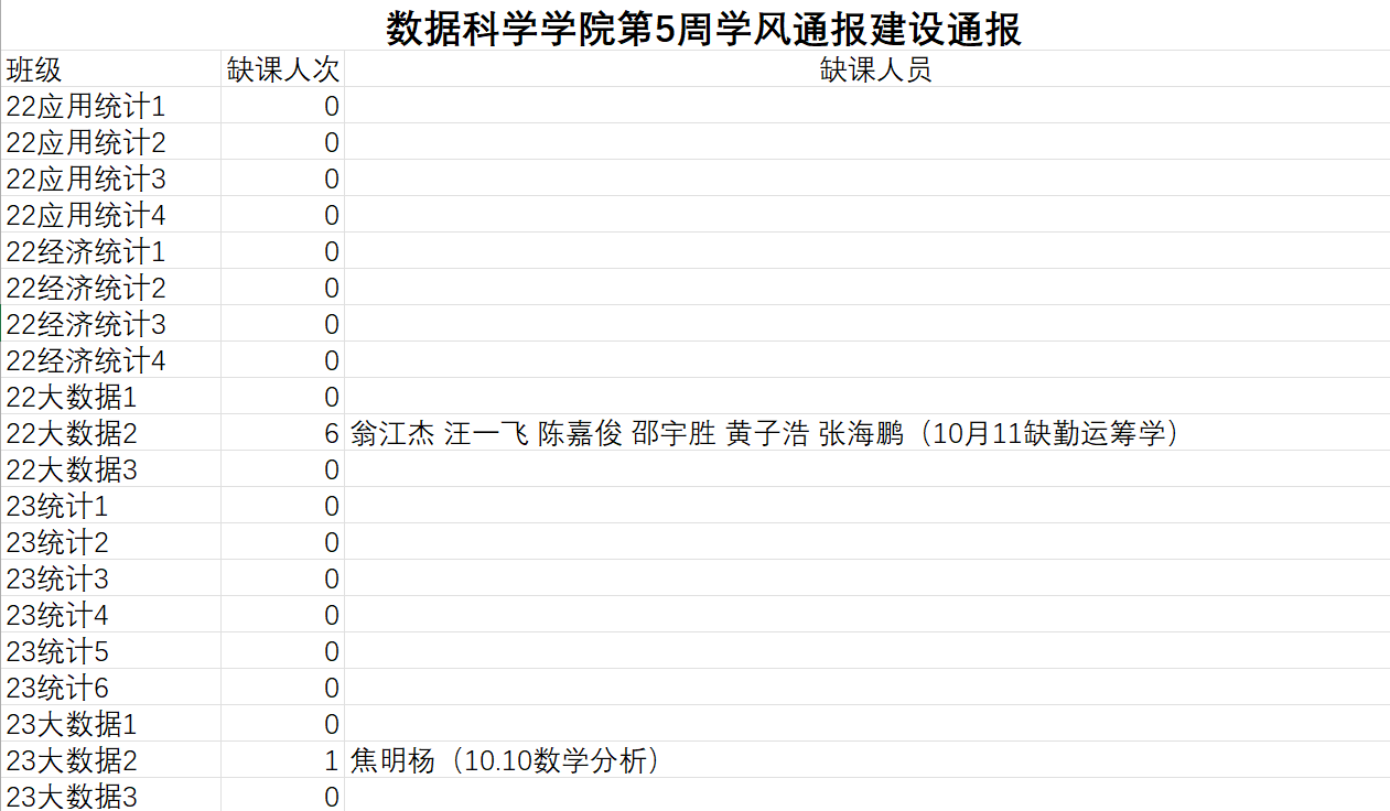为进一步培育优良学风,构建黄漫 学风建设的长效机制,营造良好的学习氛围,推进内涵建设,构建优良院风,学院对所有大一、大二班级统一上的课程及晚自习进行了课前全覆盖点名。现将点名情况做如下通报。