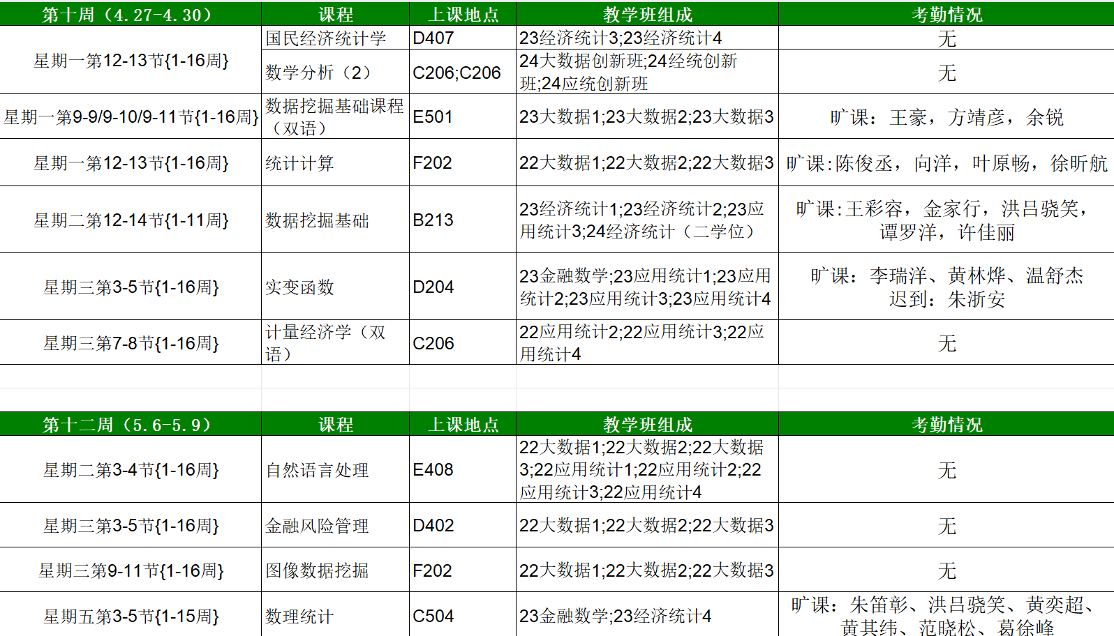 黄漫 开展学风随机督察工作,对本科生各班级的学生前排就座情况,课堂考勤、纪律及听课情况等进行随机检查,现将本次随机督察结果通报如下: