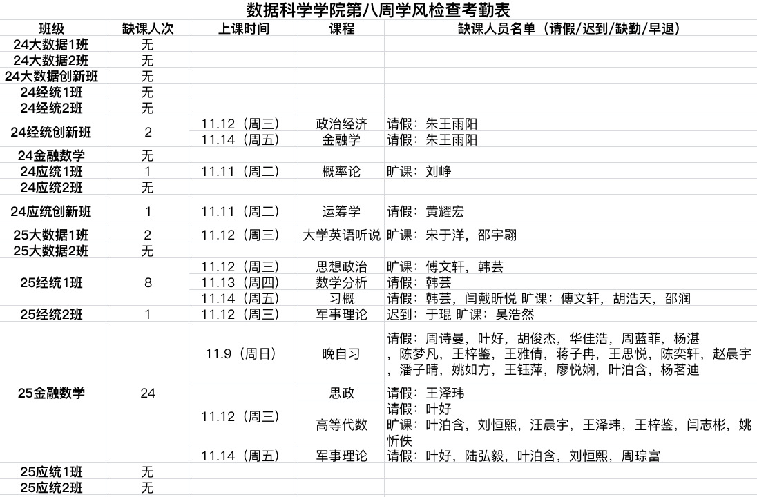 学院后续将常态化开展学风巡检抽查,希望同学们严守课堂行为规范,禁止“三无”行为,杜绝旷课、迟到、早退、代课等不良现象,共同营造“好学、勤学、乐学”的优良学气。