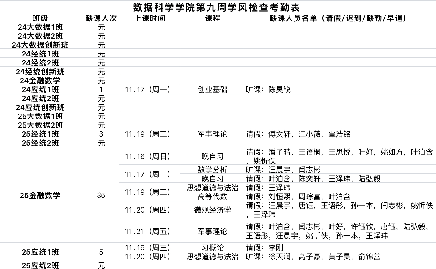 学院后续将常态化开展学风巡检抽查,希望同学们严守课堂行为规范,禁止“三无”行为,杜绝旷课、迟到、早退、代课等不良现象,共同营造“好学、勤学、乐学”的优良学气。