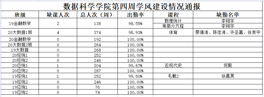 为进一步培育优良学风,构建黄漫 学风建设的长效机制,营造良好的学习氛围,推进内涵建设,构建优良院风,学院对所有大一、大二班级统一上的课程进行了课前全覆盖点名。现将点名情况做如下通报。