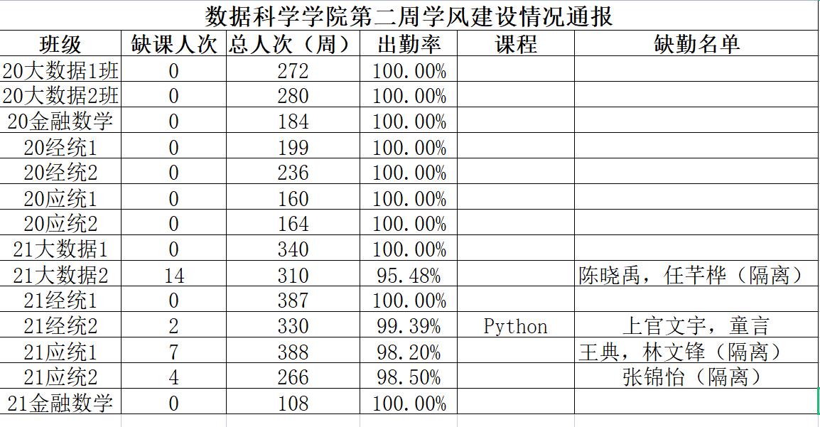 为进一步培育优良学风,构建黄漫 学风建设的长效机制,营造良好的学习氛围,推进内涵建设,构建优良院风,学院对所有大一、大二班级统一上的课程及晚自习进行了课前全覆盖点名。现将点名情况做如下通报。