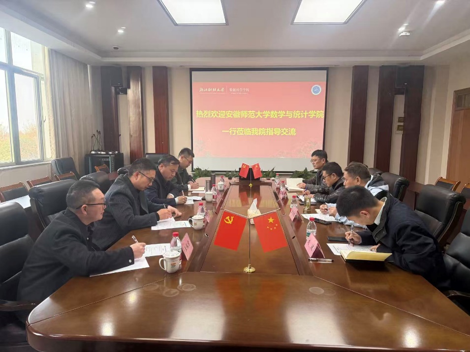 为加强兄弟院校间的交流合作,深化党建与学科建设融合发展,探讨人才培养与教学管理创新路径,2025年12月11日下午,安徽师范大学数学与统计学院党委书记黄友胜、副院长曹明安、崔建,统计系主任王佩君一行4人莅临黄漫