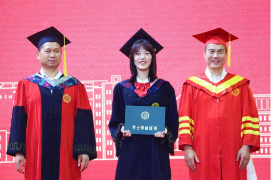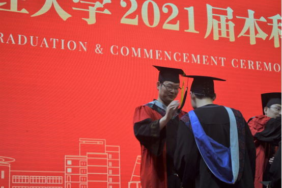 150余名毕业生依次上场,由王奎泉副校长,数科学院党委书记段雪辉、副院长周银香、副院长李杰及各专业导师为他们颁发学位证书,并拨穗完成仪式,象征大学时光的学习与付出最终收获成长。