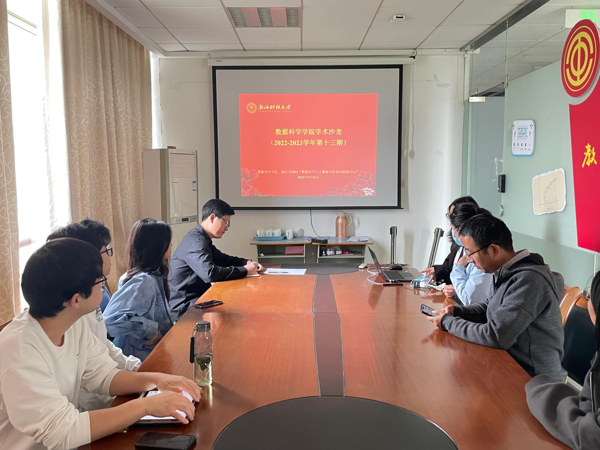 暨数据科学与大数据分析协同创新中心举办了2022-2023学年第十三期学术沙龙。数据科学与大数据技术系王群博士为师生带来了一场题为“A globally convergent method for solving a quartic generalized Markowitz portfolio problem”的学术报告,报告由数据科学与大数据技术系主任刘磊主持,十余位教师和研究生参加了报告。