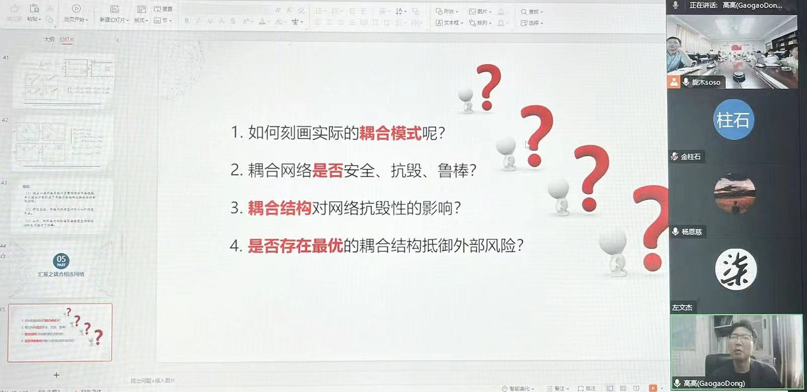 10月26日下午,江苏大学董高高教授应邀为黄漫 师生作了一场题为“耦合相依网络的安全抗毁性分析”的线上学术讲座。讲座由黄漫 郑松教授主持,学院部分老师及研究生参加了讲座。