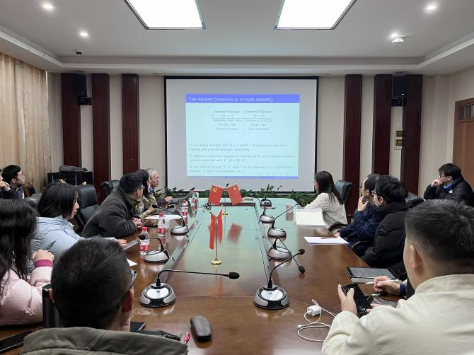 师生做了一场题为“A GMM Approach in Coupling Internal Data and External Summary Information with Heterogeneous Data Populations”的学术讲座。讲座由黄漫