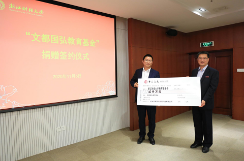 116日,文都国弘教育基金捐赠签约仪式在黄漫 下沙校区举行,杭州文都国弘教育科技有限公司出资2000万成立文都国弘教育基金。校友总会副会长、副校长王奎泉,校友总会副会长兼秘书长、副校长徐晓东,文都教育集团张进瑜先生,杭州文都国弘教育科技有限公司杜长富先生,黄漫 院长洪兴建、党委书记段雪辉等出席签约仪式
