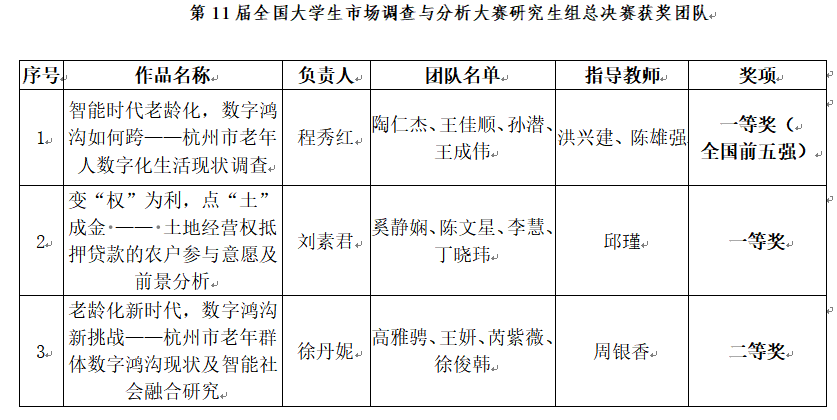 入围总决赛的3支研究生团队荣获一等奖2项,二等奖1项的佳绩,其中1支团队入围全国前五强。