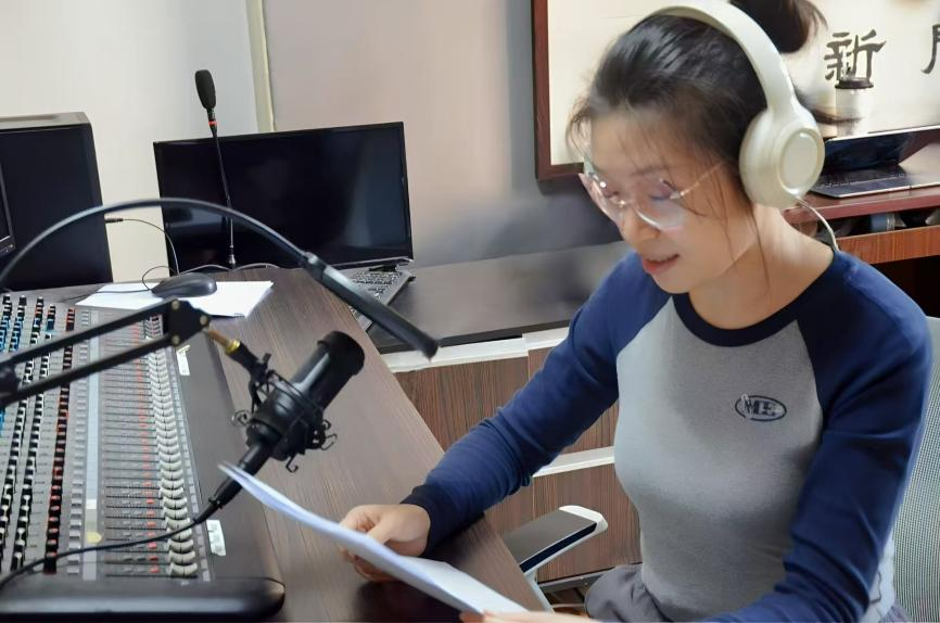 崔婷婷老师正在录制电台节目
